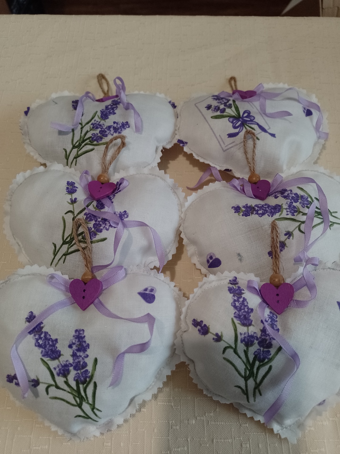 Srdíčko je ušito z bavlněné látky. Plněno ovčím rounem a sušenou levandulí.